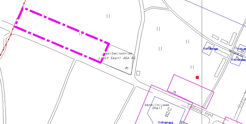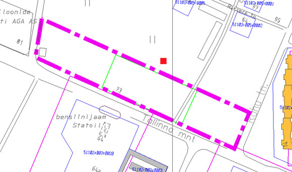 Märkused: Planeeringuga kavatsetakse moodustada uus krunt pindalaga ca 5000 m², autode müügi- ja hooldekeskuse ehitamiseks. Ehitusalune pindala kuni 1500 m² - ni, kõrgus - 2 korrust.