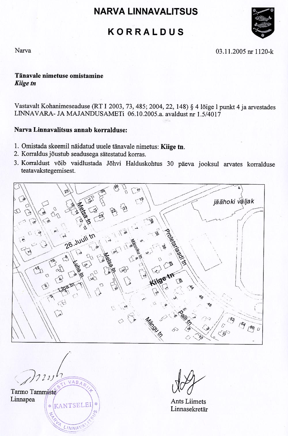 - Kiige tänav 03.11.2005 korraldus 1120-k