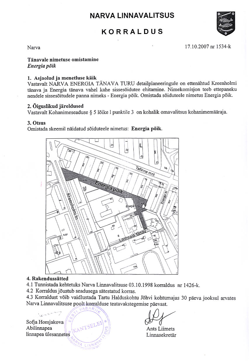 - Lasteaia tänav 03.10.2007. korraldus 1427-k
