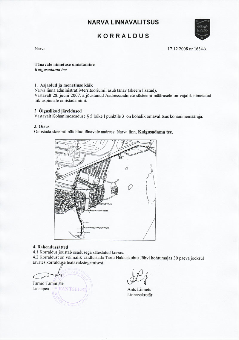 - Kulgusadama tee 17.12.2008 korraldus 1634-k