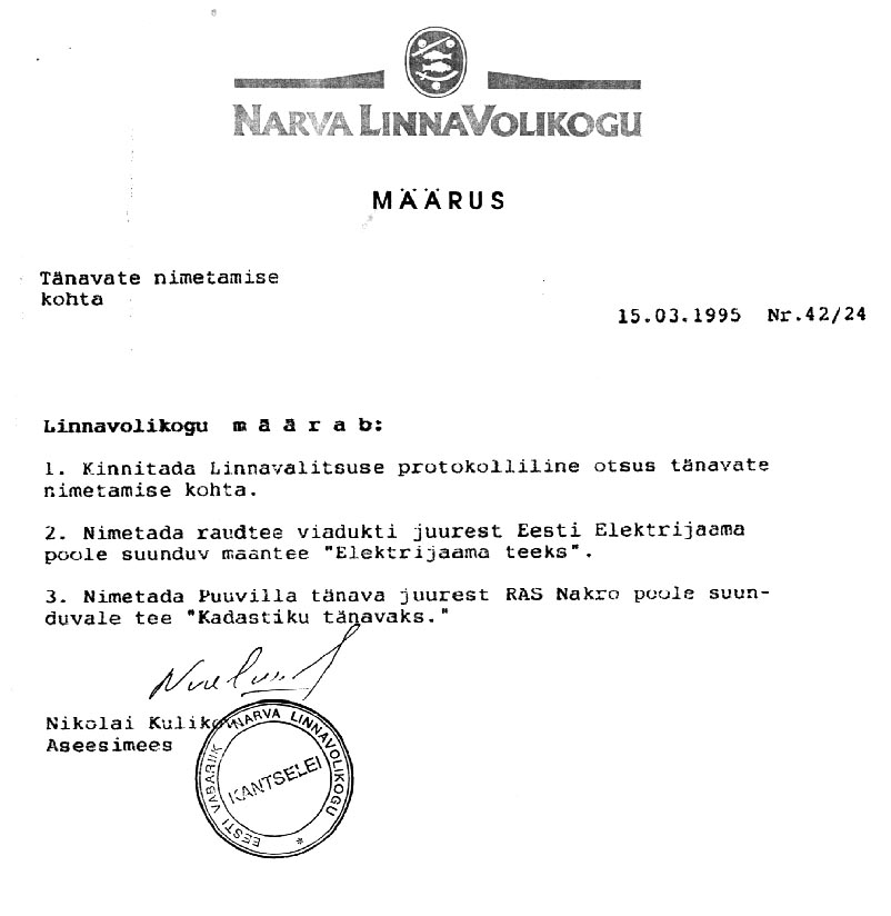 - Kadastiku tänav 15.03.95 määrus 42/24