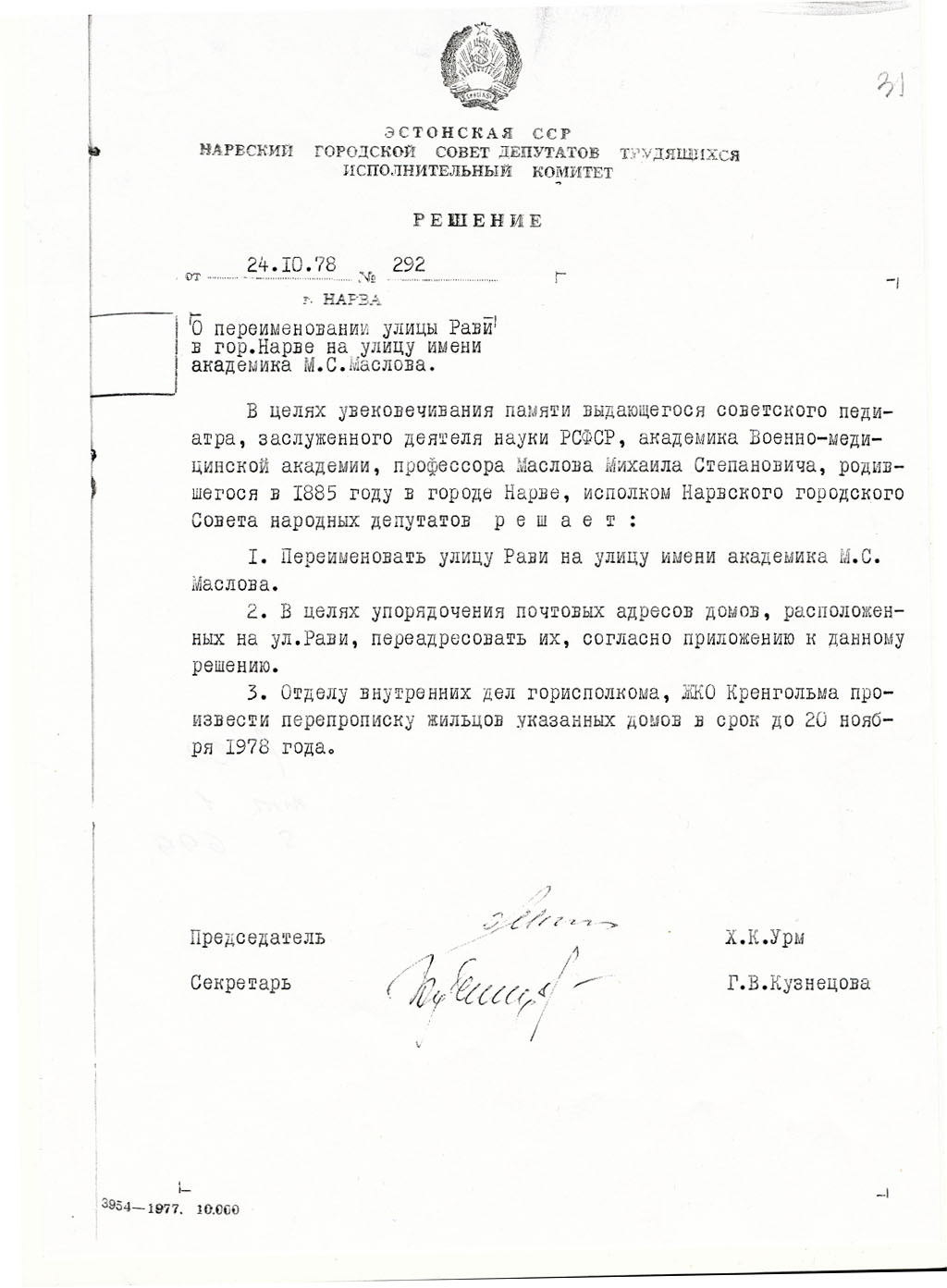 - Mihhail Maslovi tänav (endine Ravi tn)