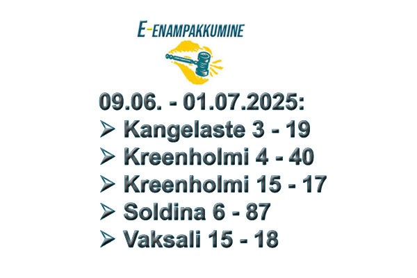 Avalik elektrooniline enampakkumine toimub 09.06.-01.07.2025 linnamajandusameti oksjonikeskkonnas: https://limis.narva.ee/kinnisvara/myyk.php?lang=et.