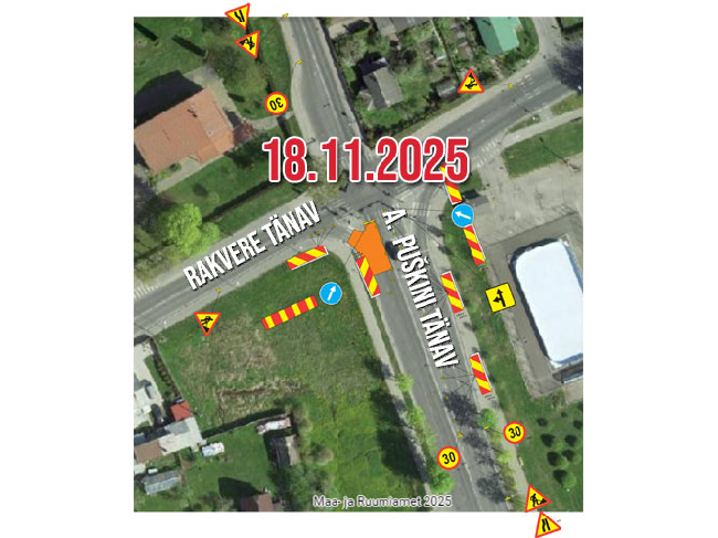 18.11.2025 toimuvad veetorustiku avariilised remonditööd A. Puškini tn ja Rakvere tn ristmikul ning seal muutub liikluskorraldus. Foor lülitatakse kollase vilkuva tule režiimile ja liiklus...