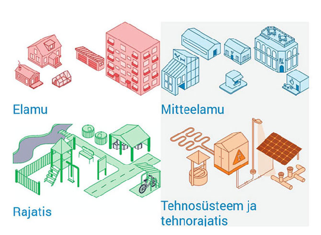 Veebileht käsitleb esialgu nelja kategooriat: elamu, mitteelamu, rajatis ja tehnosüsteem.