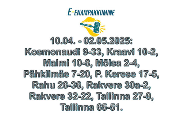 Avalik elektrooniline enampakkumine toimub 14.04-02.05.2025 linnamajandusameti oksjonikeskkonnas: https://limis.narva.ee/kinnisvara/myyk.php?lang=et.
