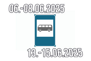 06.-08.06.2025 ja 13.-15.06.2025 sõidavad lisabussid marsruudil Jäähall-Jaam-Energia-Kangelaste maja-Rakvere 36-Riigiküla kalmistu: