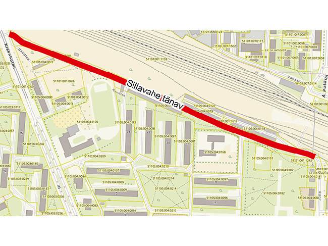 Raudtee tänava liikluspinna ruumikuju muutmine ning Sillavahe tänava kohanime määramine
